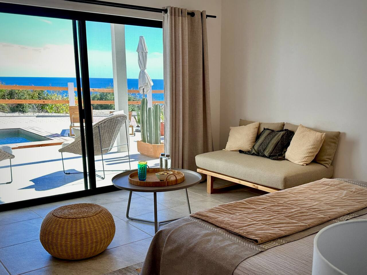 / night“Casa del Mar” Cabo Vinorama Casa del Mar is more than a villa — it’s your private perch above the Sea of Cortez, hidden within the gated community of Cabo Vinorama and perfectly placed halfway between San José and Cabo Pulmo. Here, the modern comforts all in a setting that feels worlds away where the desert meets the sea, and the pace of life slows to match the rhythm of the waves. Wake up with the sunrise and wander down to the endless beach for a barefoot stroll. Snorkel in the clear shallows, or paddle out to surf our local breaks, “La Poza,” or “Punta Perfecta.” Linger by the infinity pool on the yoga deck as the sea glitters in front of you, or set off to explore — from the reefs of Cabo Pulmo to the beach and restaurants of La Fortuna. Casa del mar consists oof includes four lofts, for 8 adults plus juniors, giving you nearly 2,900 sq ft of indoor living space plus multiple terraces, gardens, and shared outdoor areas: 🌅 Grand Horizon Loft (1,400 sq ft): The heart of the villa, located upstairs. A spacious gathering space with a fully equipped kitchen, a large island and dining table that doubles as a perfect workspace, a comfortable living room with panoramic ocean views and a large-screen smart TV, a king bedroom with en-suite bath and dressing area, plus two private terraces — perfect for sunrise coffee or stargazing. 🌿 Serenity Loft (580 sq ft): An inviting ground-floor retreat with a king-size bed, kitchenette with dining bar, a cozy sofa seating area, en-suite bath, and a private terrace that opens to the jacuzzi. 🌊 Driftwood Loft (460 sq ft): A serene, beach-inspired loft featuring a king bed, kitchenette, en-suite bath, and private terrace — ideal for a quiet morning coffee or sunset cocktail. 🌺 Hideaway Loft (460 sq ft): Tucked away for ultimate privacy, with two twin beds (or a king upon request), kitchenette, en-suite bath, and its own secluded terrace. Perfect for kids, teens, or friends traveling together. Throughout the villa, in every Loft: High-speed Wi-Fi and air conditioning for your comfort Large-screen smart TVs for streaming your favorite shows Full en suite bathrooms and dressing areas for privacy and convenience Step outside and experience Casa del Mar’s shared spaces: Infinity pool to cool off and take in the spectacular sea Outdoor entertainment terrace with panoramic views of the Sea of Cortez Yoga deck for sunrise or sunset practice or lounging during the day Heated jacuzzi for relaxing evenings & gazing at the stars Outdoor grill and picnic area for casual gatherings Fire pit & garden for magical nights with family and friends We can’t wait to host you! Michael Casa del Mar – Cabo Vinorama Note: Casa del Mar is 40-50 minutes from San Jose on the unpaved picturesque East Cape Coastal Road half way to Cabo Pulmo. You will know you have arrived when you see Cabo Vinorama entry gate. You will be met there and taken to the house which is inside the gated property. The beach, surfing, kiting, boarding and swimming just a 5 minute walk. You need to bring experience and equipment. Grocery shopping needs to be planned in advance. The caretaker will be there each day but Sunday. Please consult us before you arrive to clear up any doubts you may have.